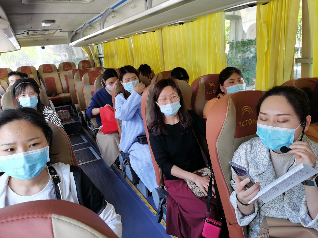 聆听红色歌曲,感悟红色精神。中午1点30分,全体人员集合完毕,在“唱支山歌给党听”、“绣红旗”、“弹起我心爱的土琵琶”、“不忘初心”等红色经典歌声中,全体人员乘坐大巴一同前往武汉市革命博物馆。