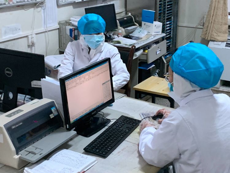 发热门诊医护人员在为患者开检查单,做进一步检查。