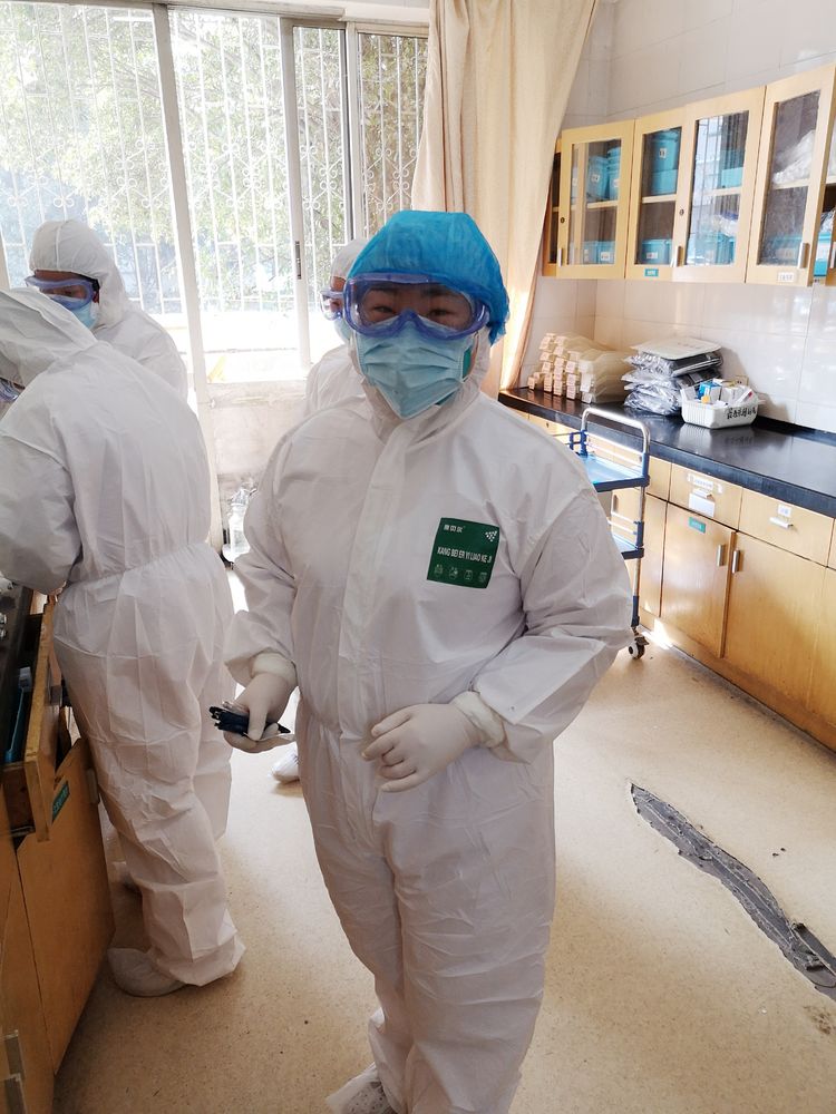 曾玉兰主任作为科室主任,在收到疫情通知后,在防护物资缺乏的条件下戴着一个N95口罩就上了前线,在一线与病毒抗争20多天。每天除了负责科室病房的工作,还坚持到ICU查看几个重症病毒性肺炎的病情变化,不停的为其他科室会诊发热及病毒性肺炎的病人,指导隔离和治疗。