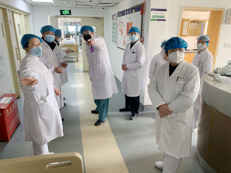 内科一党支部副书记、ICU护士长袁文玲连续奋战20多天,每天工作时间长达13个小时,没有好好吃过一顿饭。ⅠCU马静主任和王模荣医生每天坚守工作岗位,春节期间一天也没有休息。