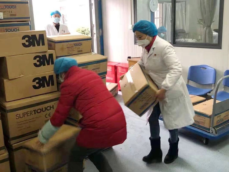 后勤党支部书记、器材科科长章民、副科长桂雄才春节期间几乎以院为家,保证物资和防护用品的及时到位。医院还有一批党员和职工组成的志愿队,每天都协助搬运、下货、收货、发货。社会捐赠的物资到了,群里一呼,响应者众,大家说