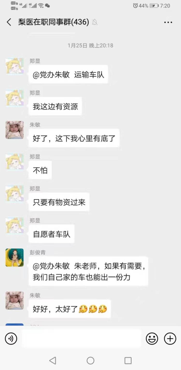 治疗师们虽然不能在抗击肺炎的一线,但是他们一样热血沸腾,主动请缨,做自己力所能及的后勤保障工作。治疗师金晶、彭俊青积极参加一线医护值班宿舍的搭建和卫生整理工作、治疗师郑显发动一切社会关系,成立爱心志愿者小队,为一线筹集运输保障物资。另外,王甜甜、柯友娇等也在联系其朋友为一线募集保障物资……不能在一线的同志们说:虽然我们不能在一线战斗,但是大家齐心协力,发挥各自能力,凝心聚力为抗击疫情尽一份心、出一份力。