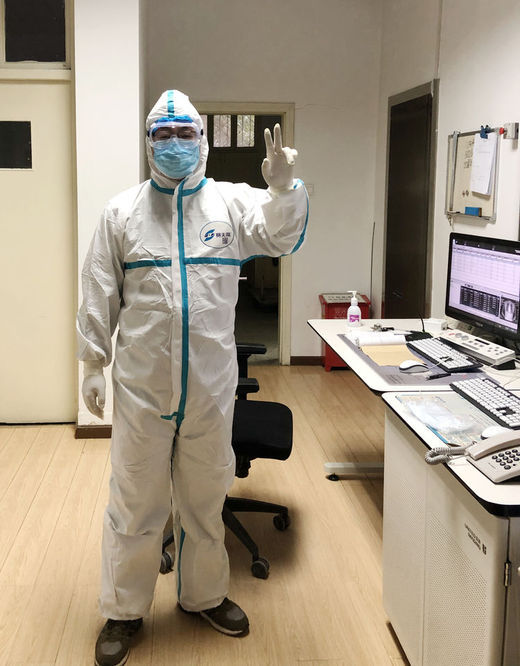 突击队勇士出征,后备队厉兵秣马。我们刘小军主任为了保证一线员工的安全,利用中午休息的时间,一个人爬上高梯抢修CT室排风扇。他考虑到操作空间闭塞,空气不流通,特地跟我们自制一个移动式紫外线消毒灯。杨健老师和连莉老师不辞劳苦经常跟医院仓库老师沟通交流,为科室前线人员准备防护物资,确保一线人员安全。这个春节假期他们都没有好好休息。放射科人每天为这些勇敢、团结、温暖的力量而感动,他们的坚守与勇敢让人动容。