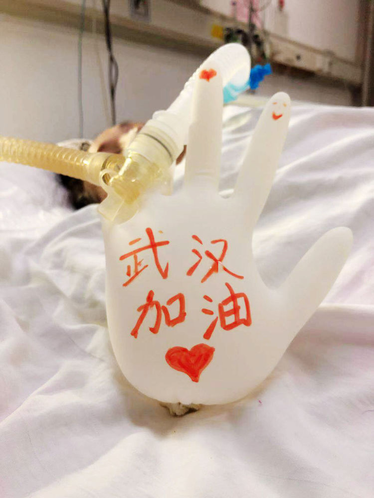 “女汉子”的外表下其实也有颗温暖的心。褚甜巧妙的用橡胶手套充气成一个球形,支撑氧气管路,可以有效防止氧气管路滑脱,使管路达到有效高度,同时减轻管路对口唇皮肤的摩擦,既不压伤皮肤又能达到有效通气,且灵活性高。这小小的手套,看起来不起眼,但却让我们感觉非常温馨,给予了病人新的希望,增强病人战胜病魔的勇气!生活的点滴或多或少都能给他人带去温暖与希望,让我们共同筑起冬日里的火焰,温暖他人,等待春暖花开,相约绿道骑单车!