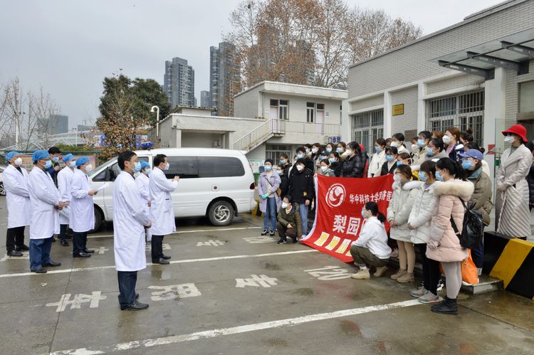 2020年2月14日13时,我院44名医护人员组成的第二批医疗队出发前往雷神山医院驰援新冠肺炎救治工作。