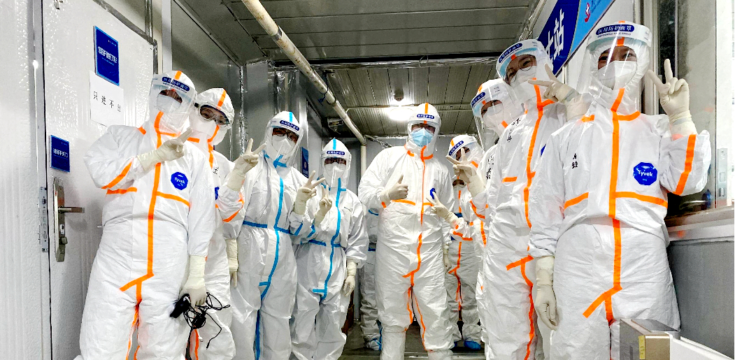 还记得2月18日我们C12病区迎来首批25名新冠肺炎患者的时候,大家全部加入收治病人的战斗,由于患者是分次到院,所有我们在舱内时间达9小时。虽然很辛苦,隔离衣早已湿透,面屏眼罩早已模糊,但医护人员共同努力,仔细认真的完成每位患者的收治工作。
