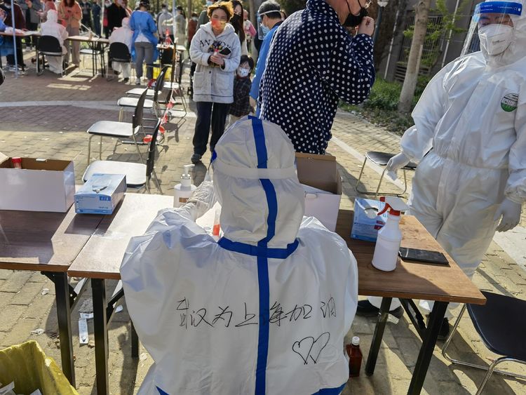 4月4日,住在浦江镇瑞和新苑北区的小男孩和5岁的妹妹,看到来自湖北医疗队雷竞技官方入口 戴着口罩的“守沪者”那忙碌的身影,在采完核酸后迅速飞奔回家,原创写了一首诗和一幅简笔画,用来送给为他们小区采核酸的金玲玲医生和刘娟护士,字里行间充满着对“大白”们的敬意!