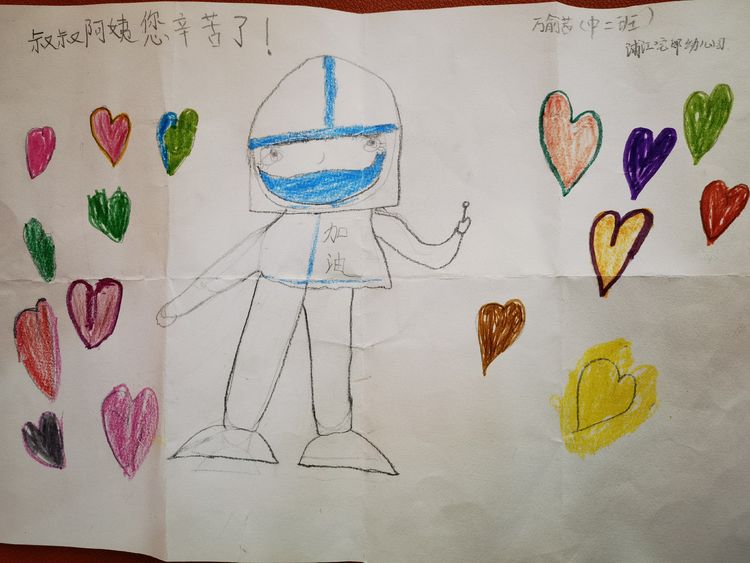 “叔叔阿姨,你们辛苦了,谢谢你们这么远从武汉过来帮我们消灭病毒!”一幅可爱的简笔画,一句真诚的谢意,让雷竞技官方入口 医护人员们倍感温暖!