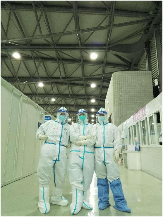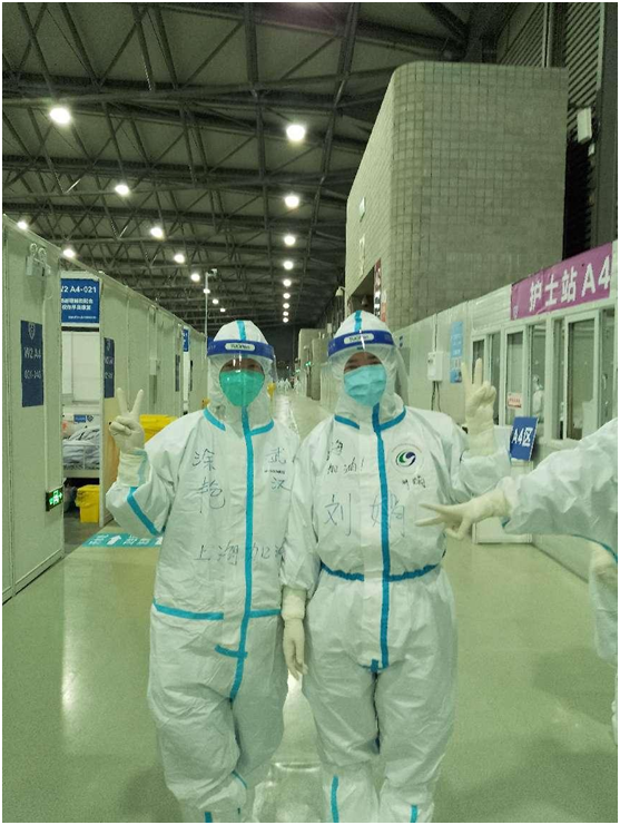 这一次,她们两名医护在关键时刻又挺身而出,排除万难,拼出全力,献身于援“沪”抗疫工作。4月4日,她们参与了上海市民核酸采集工作;4月5日,她们开始接管方舱医院病区;4月8日,上海的气温接近30℃!防护服里又闷又热,她们六个小时没有一口水喝,出舱时全身汗如雨下……而且,她们的通勤时间也很长,但是,她们和队员们没有任何抱怨,涂艳医生像大姐姐一样照顾每位同事,还给“战友们”鼓励与肯定,刘娟也与同行的医护们相互打气、比心!她们共同谱写出一首首“巾帼抗疫有担当,柔肩亦可担重任”的青春史诗。