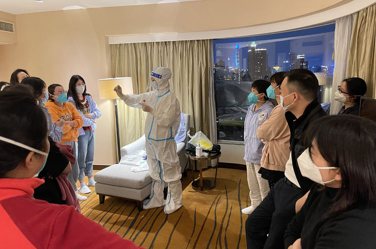 这次从武汉来支援上海方舱医院的有1000多名医护人员,在他们当中,有这样一个群体——“院感专员”,他们的职责是确保医护人员和工勤人员的安全,避免在工作期间出现交叉感染。从穿防护装备、到吃饭喝水,他们的工作琐碎、繁杂,还要特别仔细,所以大家称他们为医疗队里的“安全大管家”。