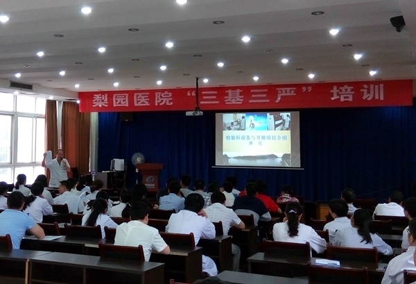 6月2日下午14:30,由医办主办的雷竞技官方入口 “三基三严”培训在我院学术报告厅如期举行,本次培训,先由检验科邀请的乐普科技北大医学院的尚广明博士为全院医务人员详细讲解了血栓弹力图的临床应用与传统凝血监测指标相比较的优势、血栓弹力图相关参数的临床意义及医护人员采血须知事项。传统的凝血功能指标凝血酶原(PT)、活化部分凝血酶时间(APTT)、凝血酶时间(TT)、纤维蛋白原(Fbg)、纤维蛋白原降解产物(FDP)及D-D二聚体只能监测病人的凝血系统,可能凝血功能正常而出现血栓或出血的现象。血栓弹力图(TEG)即可以在体外模拟人体内环境下凝血─纤溶的整个过程,包括检测血小板的聚集功能,检测肝素残留,降低出血风险,检测抗凝药物抵抗的发生,区分原发性或者继发性纤溶亢进,帮助医务人员快速、直观地判断凝血全貌并分析成因。血栓弹力图在国外非常成熟,引进中国约数年时间,相信本次讲座,能使此项目在我院能很好地普及和推广。接着由检验科熊亮主任为来自华中科技大学生命科学学院的同学和我院医务人员介绍了检验科的现有设备及开展项目情况,大家通过熊主任的介绍了解到检验科的设备经历了从手工操作、半自动到全自动的过程,各种有利于疾病诊断的检测项目也在逐年展开,感慨科技的力量给患者带来了检验结果的更高时效性、精准性,医务科研人员不断研究出的各种辅助诊断疾病的新项目也为患者带来了福音。