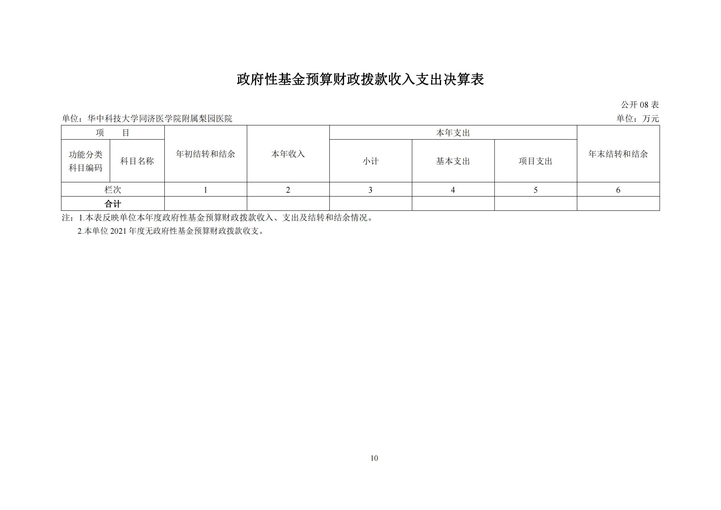华中科技大学同济医学院附属雷竞技官方入口 2021年部门决算