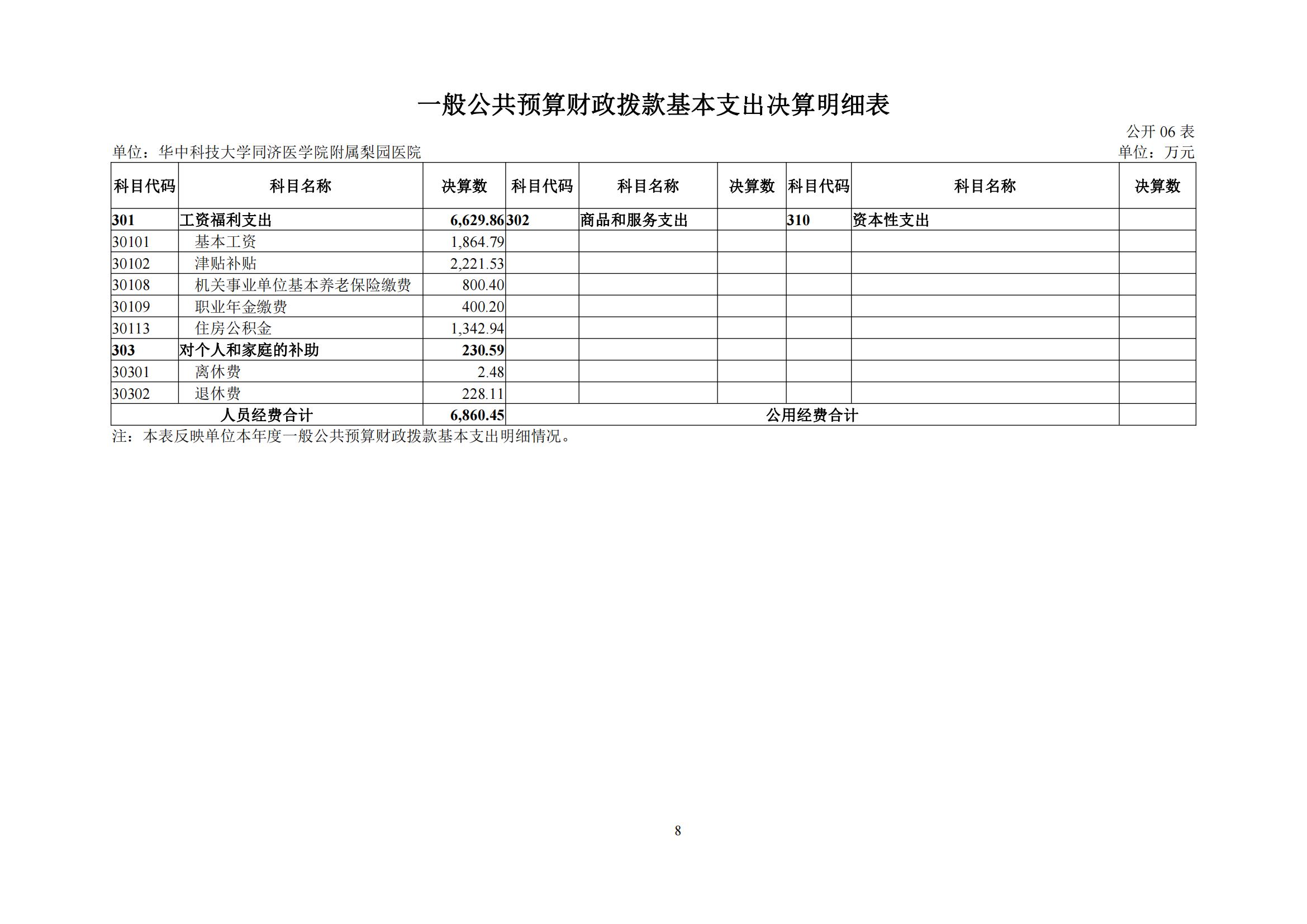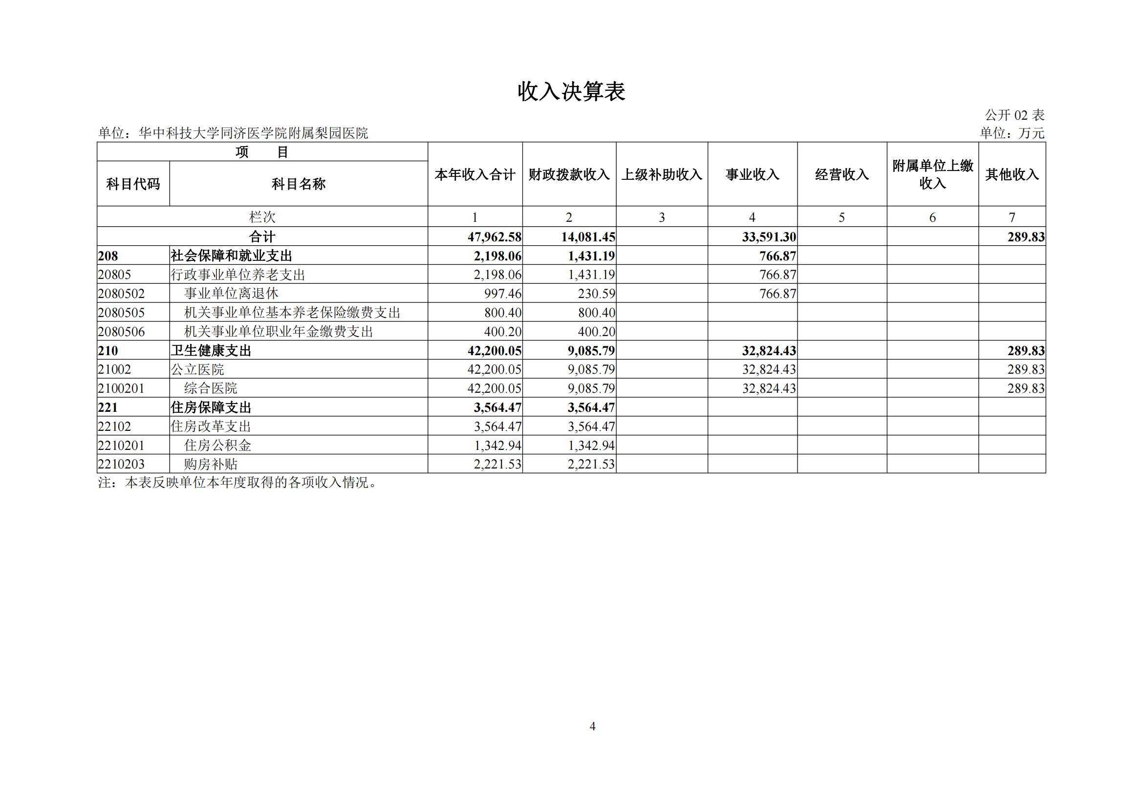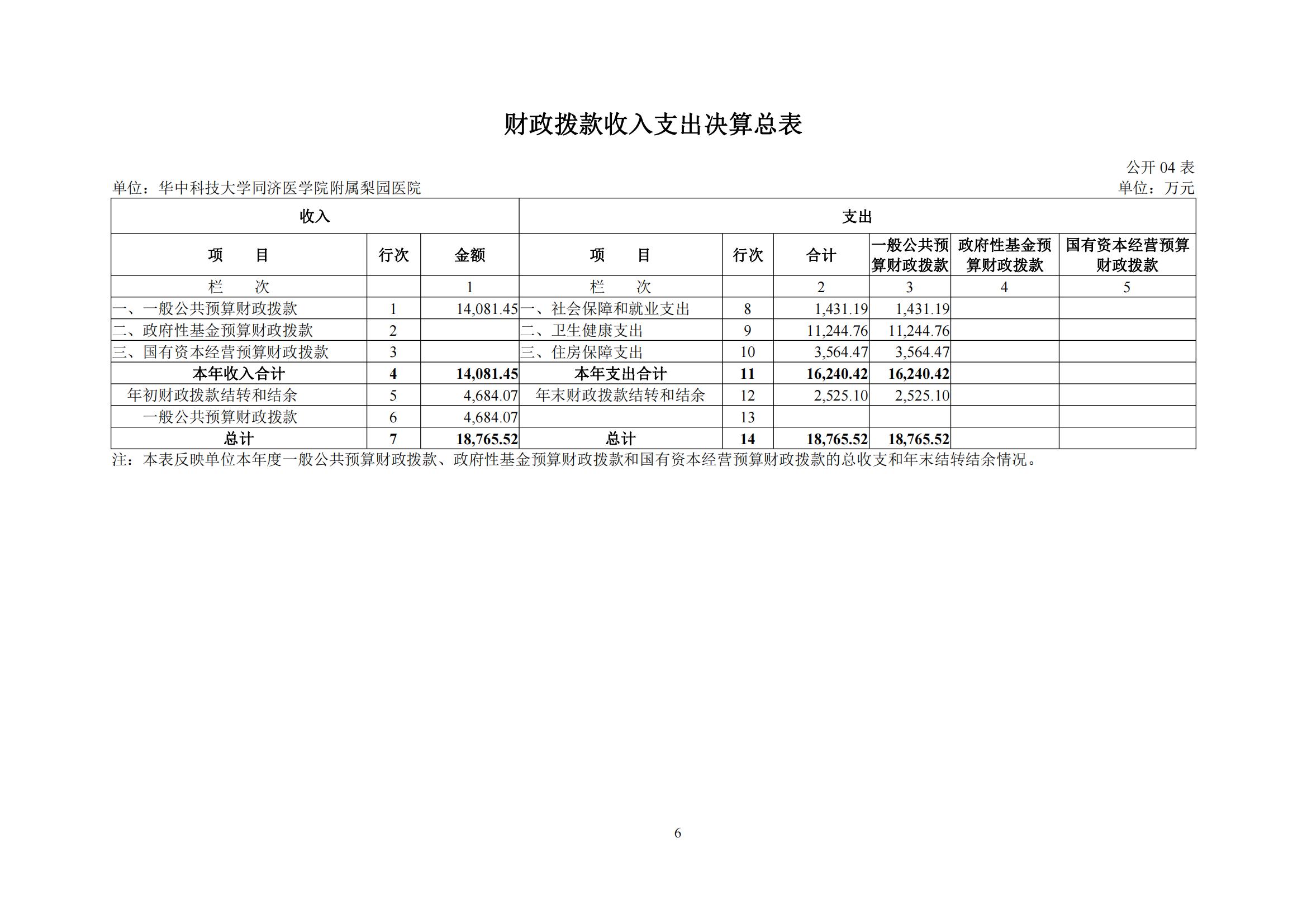 华中科技大学同济医学院附属雷竞技官方入口 2024年度部门决算