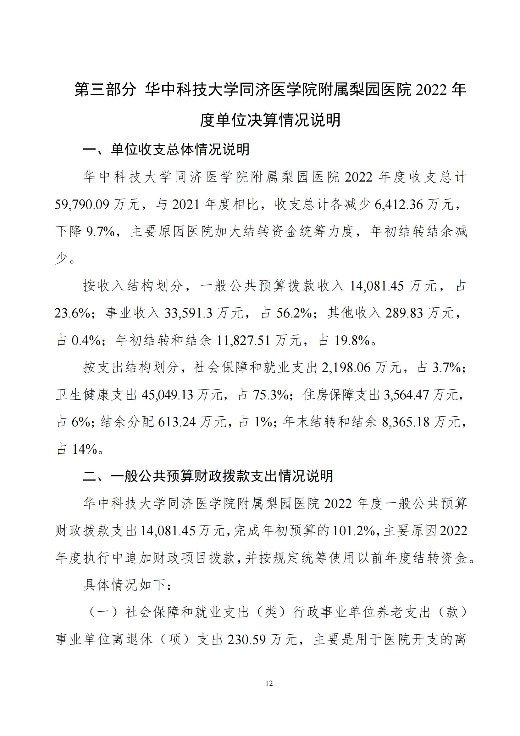 华中科技大学同济医学院附属雷竞技官方入口 2022年度单位决算