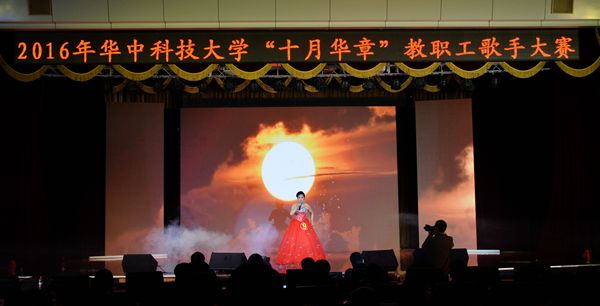 10月25日晚,在华科大管理学院报告厅,“十月华章—2016年学校教职工十大歌手”比赛拉开序幕。此次比赛共有来自学校院系的38名选手参加,经过预赛,选拔出了15名优秀歌手参加决赛,经过激烈的角逐,由大众评委和专家评委的两轮投票,我院职工王秀萍以一曲气势磅礴的“江山”,赢得观众的热烈掌声,最终荣获“校园十大歌手”声誉。