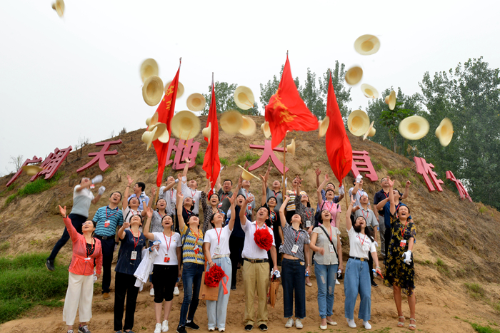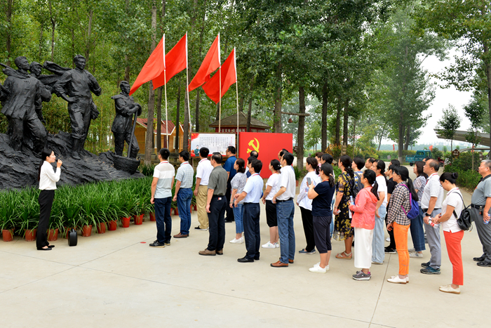 在黄河故道之一东坝头,大家实地了解“三害”形成的原因,学习焦裕禄迎难而上、敢于担当的品质;