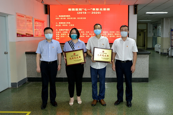 内科一党支部、医技党支部、机关党支部荣获雷竞技官方入口 2018-2020年度先进基层党组织