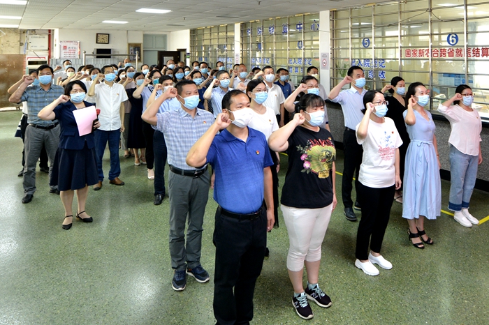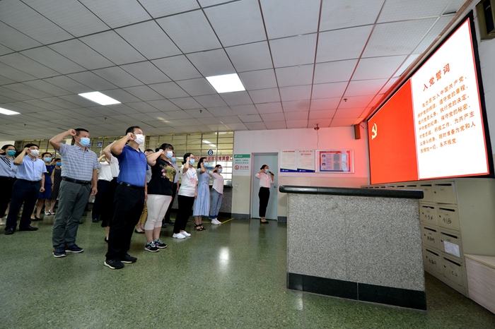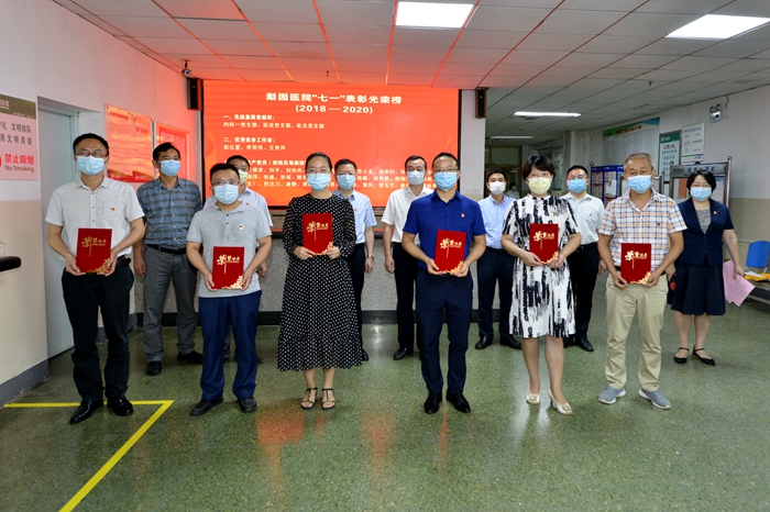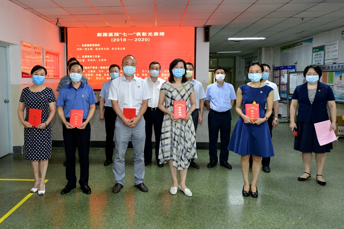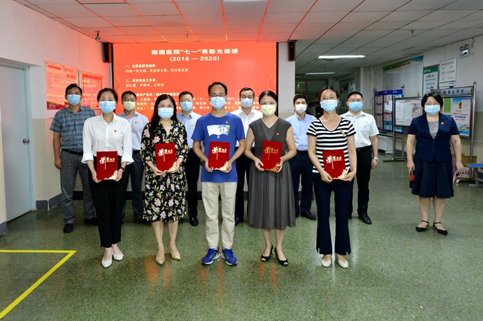 2020年7月1日下午,雷竞技官方入口 庆祝建党99周年暨总结表彰大会隆重举行。医院党委委员、党(总)支部书记及委员、党务工作者、新发展党员及党员代表共100余人参加会议。会议由党委副书记、纪委书记李善玲同志主持。