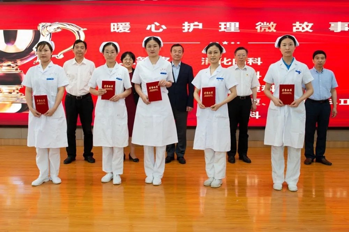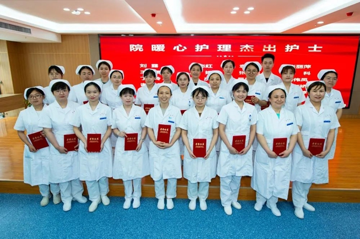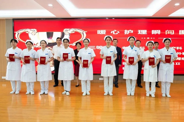 李善玲副书记宣读了表彰文件,院领导为受表彰的4名湖北省优秀护理工作者、两个“暖心护理”优秀团队、5名“暖心护理”优秀护理管理者和23名优秀护士颁发了荣誉证书,对3名从事护理工作30年的护士进行了慰问,并向在暖心护理竞赛和暖心护理图片展中获奖的选手进行了颁奖。