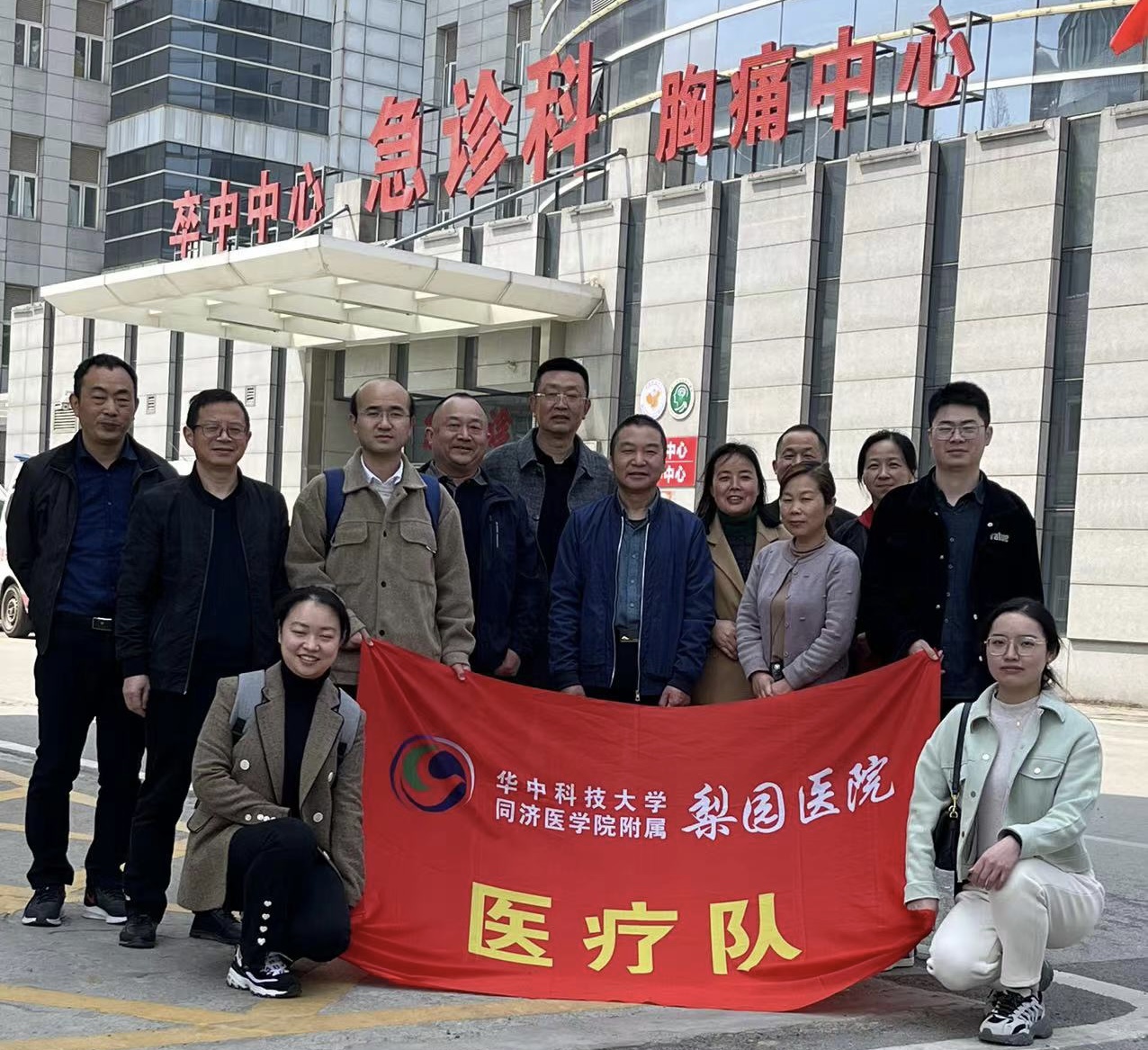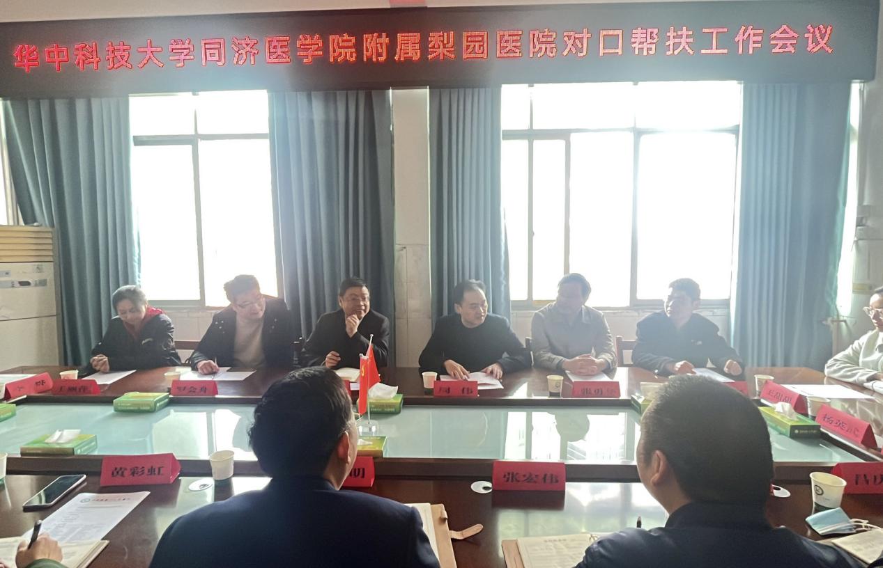 为做好新一轮对口帮扶工作,按照《湖北省2023年巩固拓展健康扶贫成果与乡村振兴有效衔接工作要点》要求,我院以县级医院综合能力提升为导向,持续深化三级医院对口帮扶工作,稳步提升对口帮扶的孝昌县第一人民医院医疗水平。3月30日上午8时,徐向阳副院长带领医务部主任周伟、副主任罗会舟、干事邵亚男、科主任代表张勇华以及援孝昌县医疗队一行10人到孝昌县第一人民医院开展对口帮扶工作座谈会。