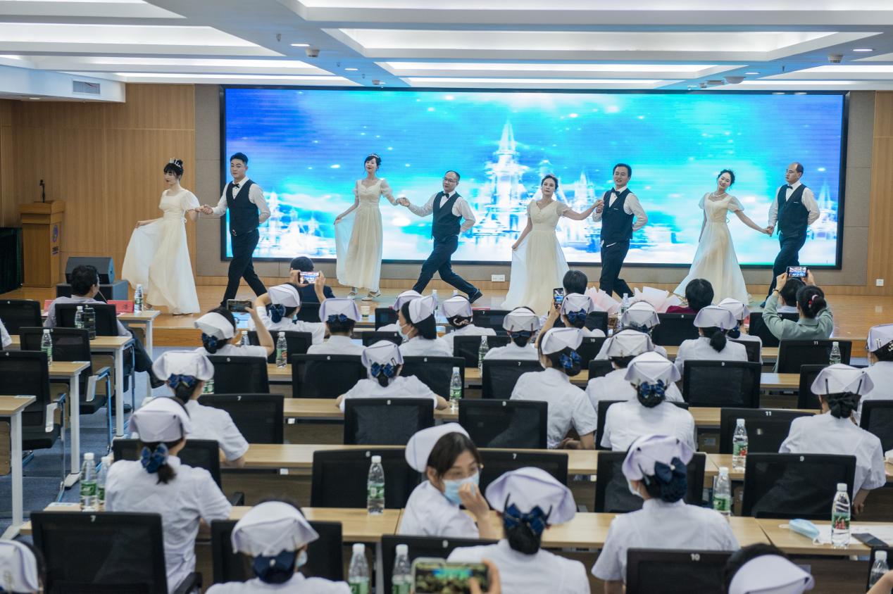 表彰大会结束后,进行了文艺汇演,由魏传可、杨诗帆主持。汇演前新入职护士们在南丁格尔的画像前庄严宣誓,她们用一声声铿锵有力的誓言,诉说了为护理事业终生奋斗的决心,相信在未来的工作中,他们也定会接过前辈手中的蜡烛不忘初心,砥砺前行!
