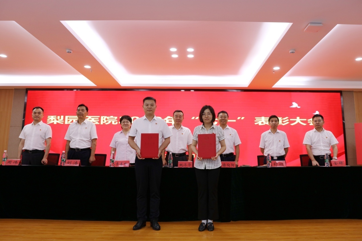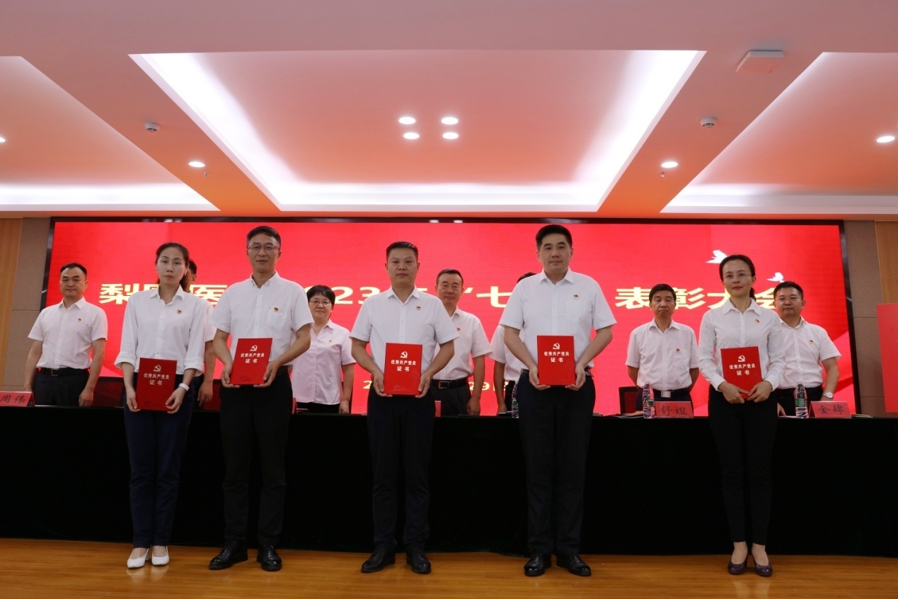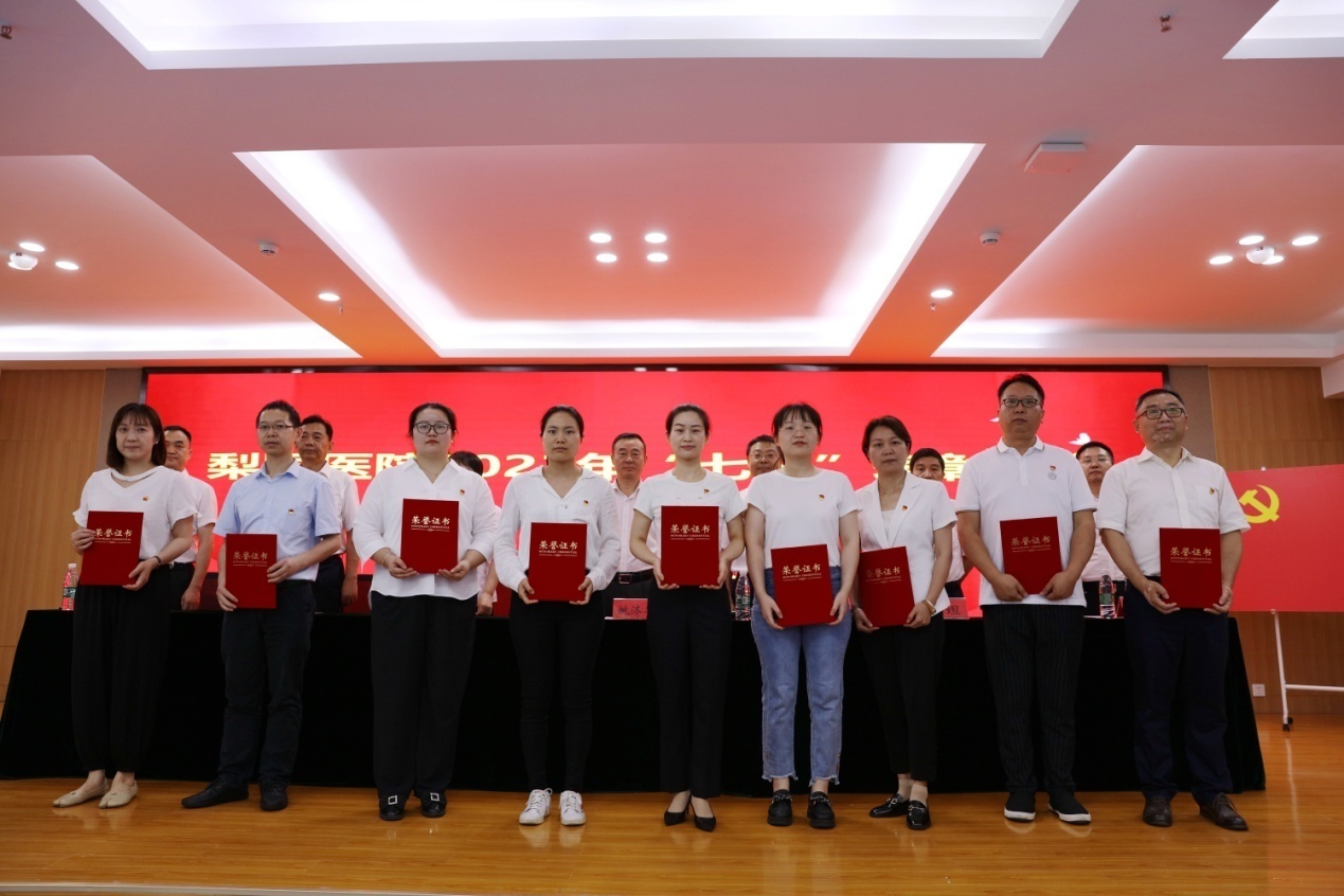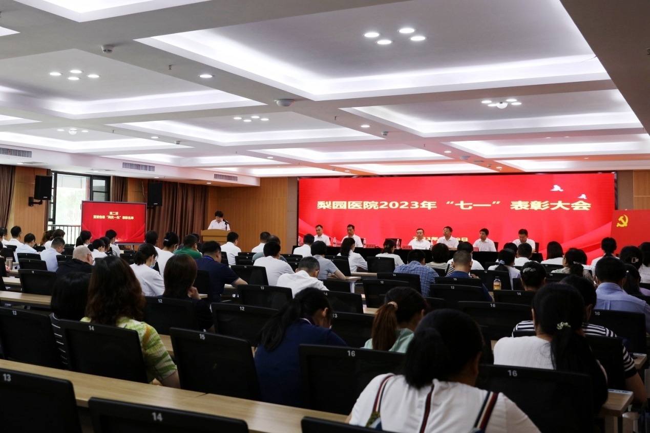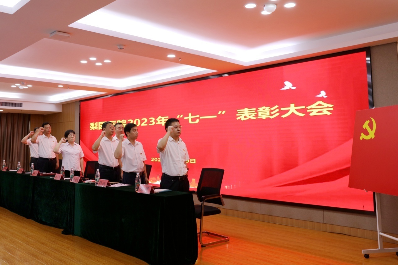 2023年6月29日下午,雷竞技官方入口庆祝建党102周年暨“七一”总结表彰大会在内科大楼学术报告厅隆重举行。医院党委委员、纪委委员、党(总)支部书记及支委、获表彰人员、临床医技科室及党政职能部门正职党员、新党员代表共百余人参会。会议由党委副书记、院长徐向阳同志主持。