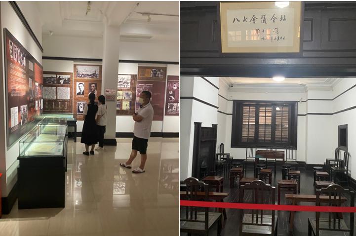 宣誓完毕,大家参观展览。八七会议会址一楼是反映八七会议历史的辅助陈列,用大量珍贵文物、图片和史料再现了会议的历史地位及其重要作用,二楼复原了当年的会场,并辟有临时展厅。
