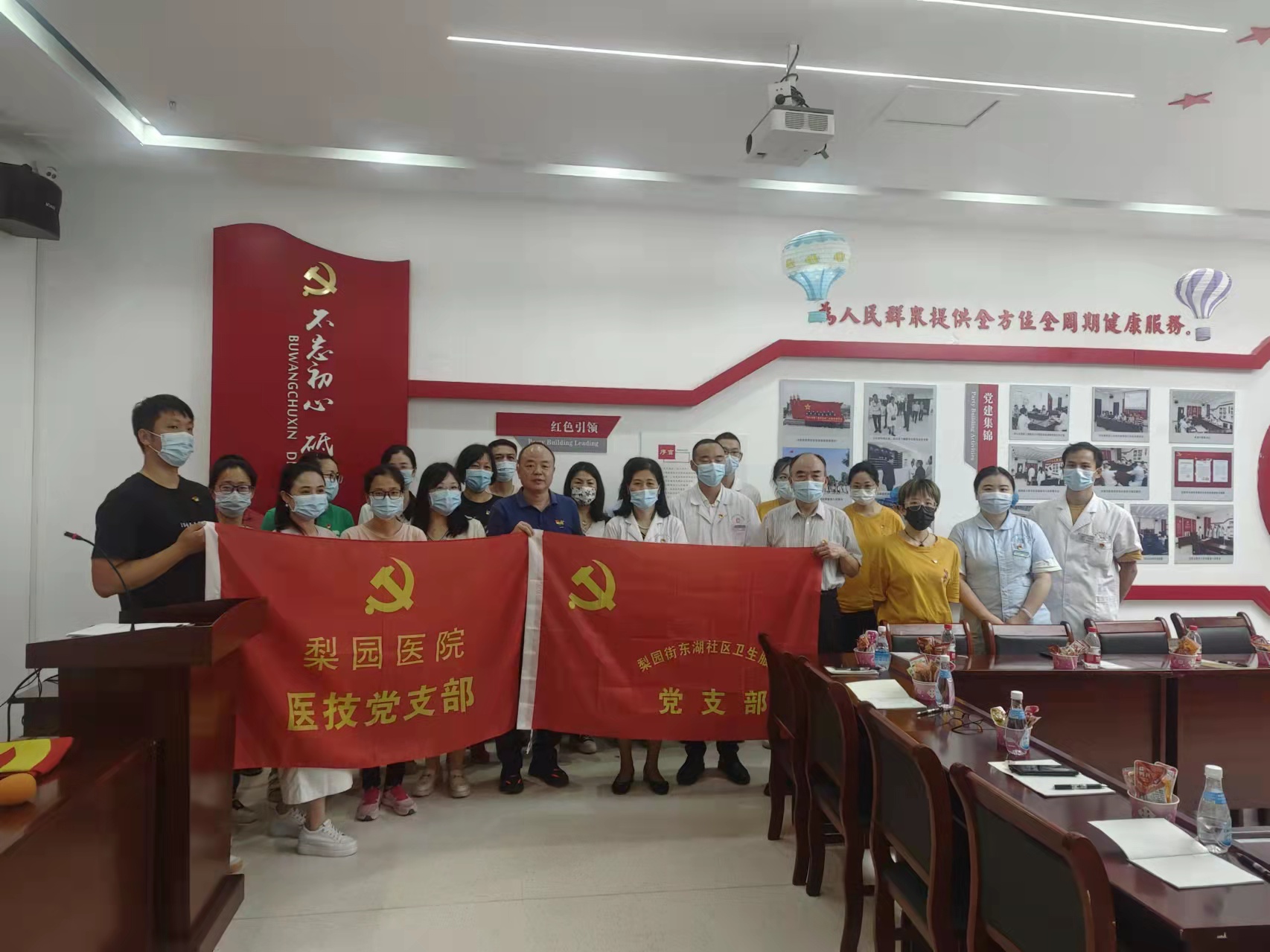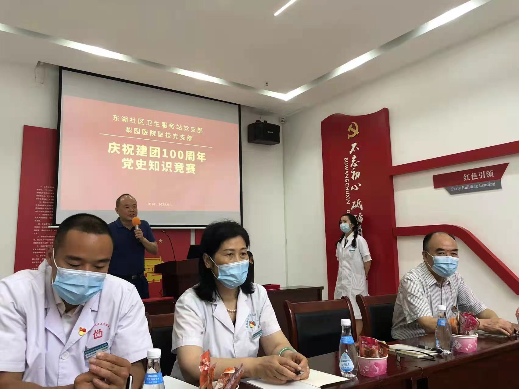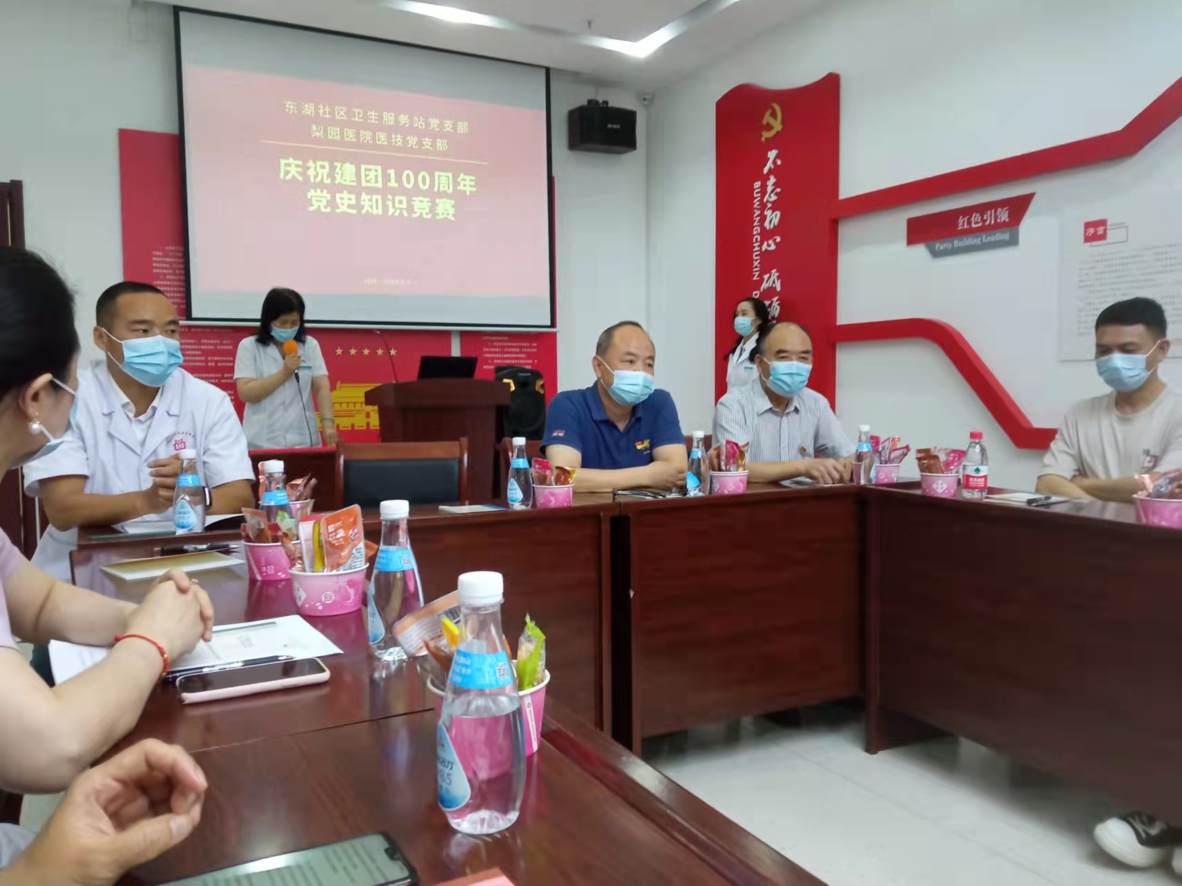 为纪念中国共产主义青年团建团100周年,医技党支部联合东湖社区卫生服务站共同策划开展了党建带团建活动。
