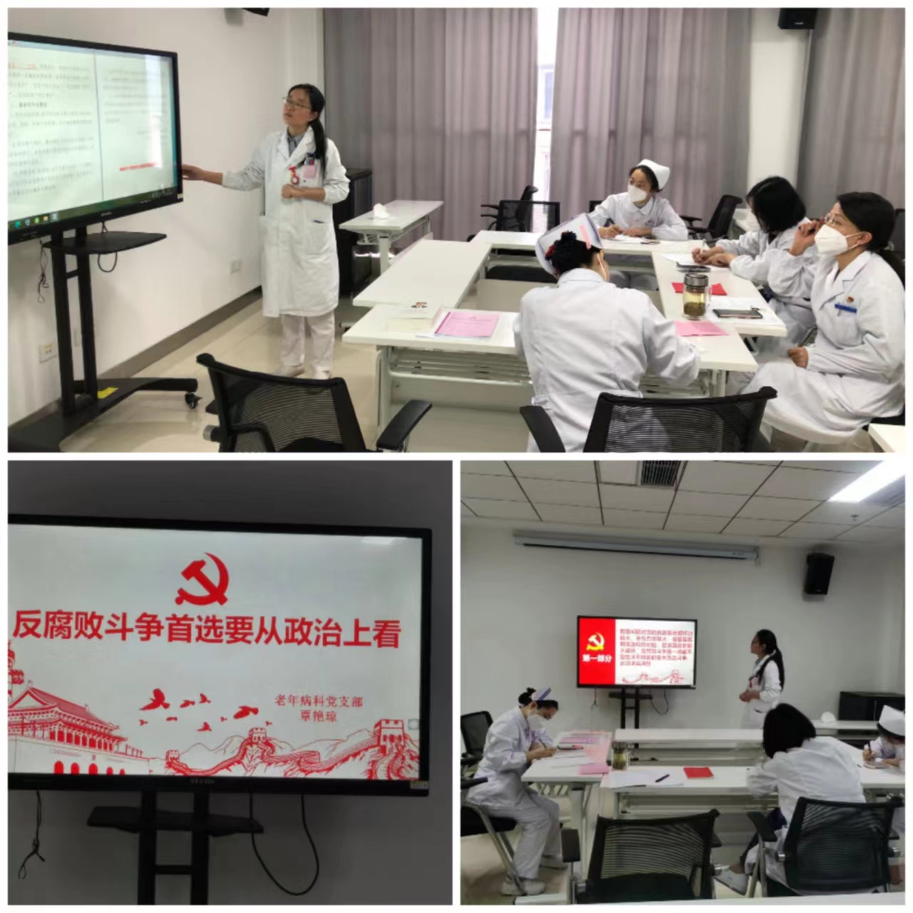 27日上午10:00老年病科党支部在新内科大楼四楼会议室开展10月主题党日活动。会议由覃艳琼书记主持,全体党员认真学习了党的二十大精神、《习近平谈治国理政》第四卷第六章~第十章,覃艳琼同志讲微党课党风廉政建设专题党课。最后全体党员讨论我们这十年每个人的成长及变化,下一个十年的规划及展望。