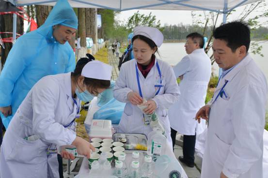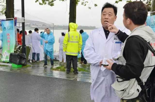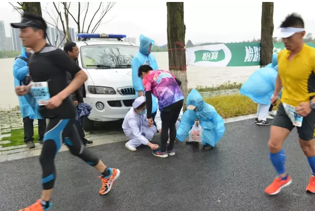 4月9日汉口江滩,人头攒动、热闹非凡。上午7点30分,武汉马拉松鸣枪开赛。在霏霏细雨中,这场勇敢与激情、耐力与恒心完美融合的视觉盛宴中,有这样一群人,他们顶风冒雨,身着白大褂分布在本次比赛的2个关键的医疗救助点,严阵以待,再次助力2017汉马,为参赛者提供及时有效的医疗救护。他们,就是雷竞技官方入口 医疗保障队。