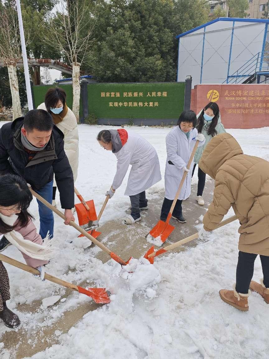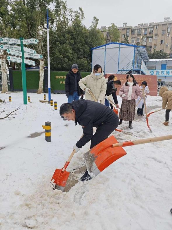 武汉遭遇大雪天气之际,机关二党支部全体成员、财经党支部在综合党总支书记罗亮的统一指挥和机关二党支部书记张勇的直接带领下,积极投身于铲雪除冰的义务劳动中。