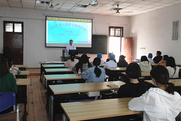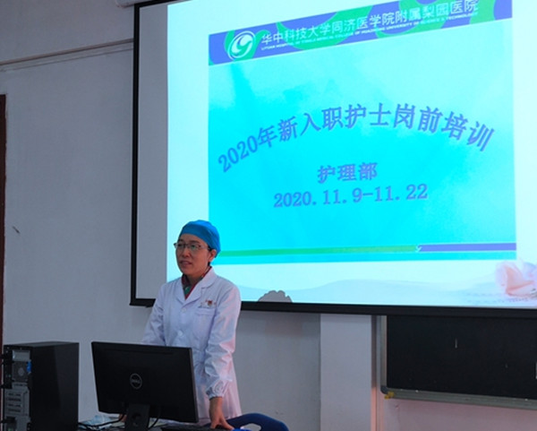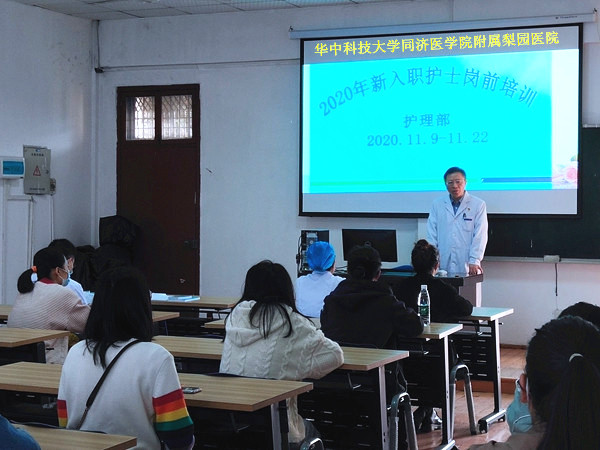 因为新冠疫情的影响,今年的新护士岗前培训比往年开班要晚一些,但这并不阻碍新护士的学习热情,大家早早便齐聚一堂。2020年11月9日8时,23名新“梨医护理人”迎来了护理部精心策划的岗前培训班在302教室开班。护理部副主任黄红艳主持开班仪式。