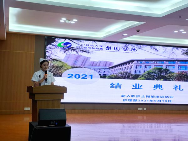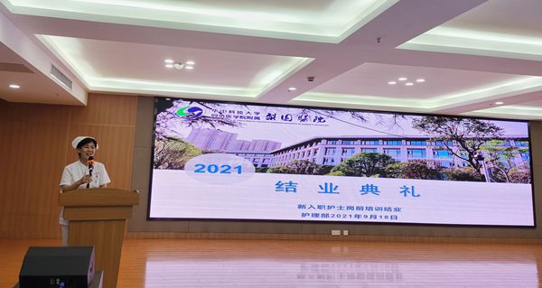 2021年9月18日,为期两周的新职工岗前培训圆满结束。护理部在内科大楼学术报告厅举办了2021年新入职护士岗前培训结业典礼,护理部主任龚玉枝、副主任黄红艳、科护士长参加了此次结业典礼。本次结业典礼由泌外科护士长孙珊珊主持。