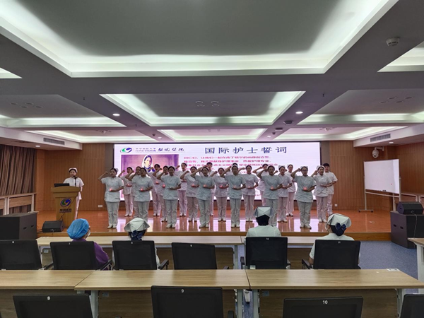 谨记誓言,永守初心。全体新入职护士在南丁格尔画像前庄严宣誓,将谨守誓言,恪尽职守,燃烧自己、照亮他人,沿着先辈的足迹,不忘初心、砥砺前行。