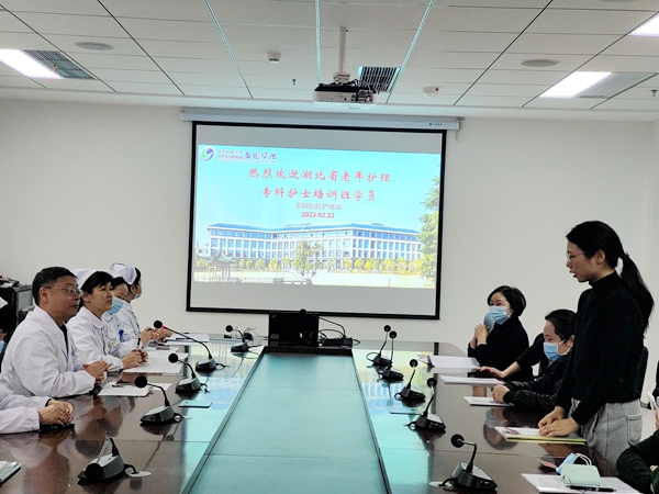 黄红艳副主任从我院老年护理专科护士培训基地建设、老年护理品牌、老年护理专科特色等方面向学员们做了介绍,并详细介绍了此次培训计划和安排。