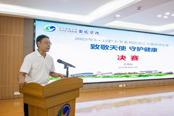 2023年5·12护士节系列活动——“致敬天使,守护健康”演讲比赛决赛。徐向阳副院长、护理部、全体护士长和护理骨干参加此次比赛,护理部李媛媛副主任主持。