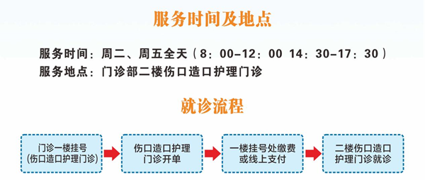 伤口造口护理门诊由经过专业培训,获得欧洲伤口管理委员会认证的国际伤口治疗师运用先进伤口护理理念和专业技术手段,为各种急慢性伤口、造口、失禁患者提供专业化护理服务。服务范围包括,手术伤口、创伤性伤口、Ⅱ度烫伤伤口等急性伤口;糖尿病足溃疡、压力性损伤、下肢血管性溃疡、术后伤口不愈等慢性难治性伤口的处理;开展造口及造口周围并发症的处理、指导患者选择造口用品、更换造口袋及造口自我护理技巧、提供造口患者及家属心理咨询等;处理大小便失禁导致的皮肤损伤、为大小便失禁患者提供咨询,选择失禁用品和护理方法。