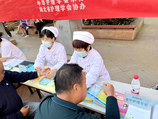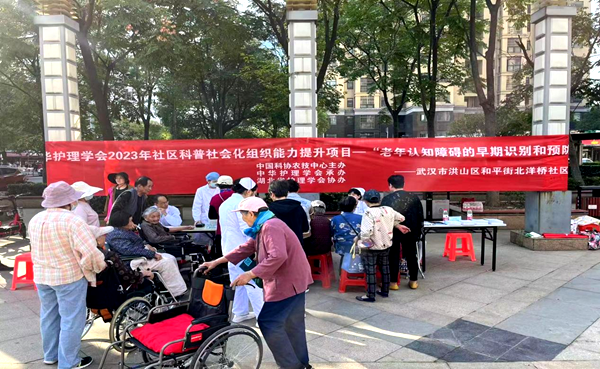 为进一步提高全民科学素养,弘扬以人民健康为中心的理念,关爱社区居民身体健康,打造高质量社区护理科普服务,根据中国科协、中华护理学会、湖北省护理学会联合组织的《关于开展2023年社区健康科普能力提升活动的通知》精神,2023年10月18日上午,雷竞技官方入口 护理部联合杨春湖社区服务中心在武汉市洪山区北洋桥社区开展了一次主题为“老年认知障碍的早期识别与预防”的义诊活动。此次活动邀请了我院老年医学专家和老年护理专家,为社区的老年群众提供了专业的咨询和指导。当天参与义诊人数100余人,发放科普手册60余份,参与社区居民健康科普能力提升的需求和社区科普教育满意度调查55人。