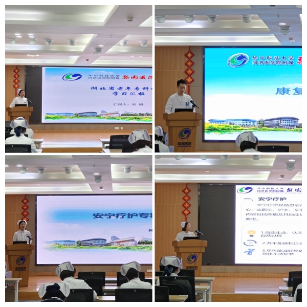 围绕国家卫健委《全国护理事业发展规划(2021-2025年)》、《进一步改善护理服务行动计划实施方案(2023—2025年)》等文件精神,为加速我院护理队伍整体水平提升,实现学习资源共享,提高服务质量及专业能力,以满足患者临床护理需求为导向,加强护理专科团队建设。3月27日下午,护理部在学术报告厅举行了2023年度湖北省专科护士培训学员的学习汇报分享会。此次分享会上,来自康复医学科魏传可、老年病科刘娟及肿瘤科吴璇和夏嫦4位同志分别进行了学习汇报,护理部副主任黄红艳主持。