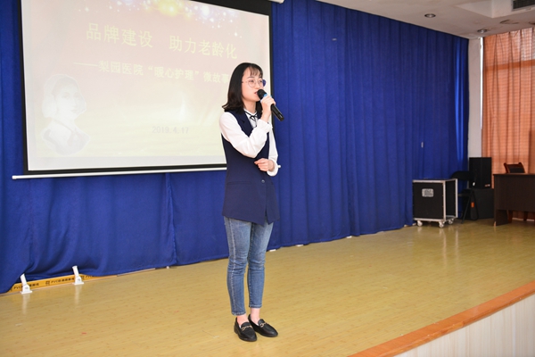 护理部主任钱新毅致词,她介绍:我院自开展优质护理服务以来,为深化优质护理服务内涵,护理部从2017年起启动了老年护理文化建设和老年护理品牌建设。构建以“关爱、尊重、专业、安全”为内涵的老年护理服务体系,打造老年特色的“暖心护理”品牌。倡导做有温度的护理,做有温度的护理管理者,做有温度的护士。开展“暖心护理”以来,在广大护理人员的共同努力和医院各部门的大力支持、配合下,获得了患者的赞誉和认可。并先后成功举办了 PDCA临床应用竞赛、双人心肺复苏及AED使用技能竞赛、品管圈临床应用竞赛、优质护理演讲竞赛和护理教学竞赛。今天的竞赛既是展现护士日常开展 “暖心护理”的工作汇报,也是相互学习、勉励大家为患者提供更加优质的护理服务。