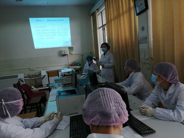 黄主任分管护理教学工作。新冠疫情发生后,协同医院相关部门筹备感染科病房,在感染科病房开科时就开展新冠肺炎感控知识培训,优化各种工作流程,严把感控关,尽量减少和避免院内感染的发生。随着疫情的发展,她主动联合院感办,到临床各科室组织护理人员现场的培训和演练。对感染科护士进行积极的心理疏导。