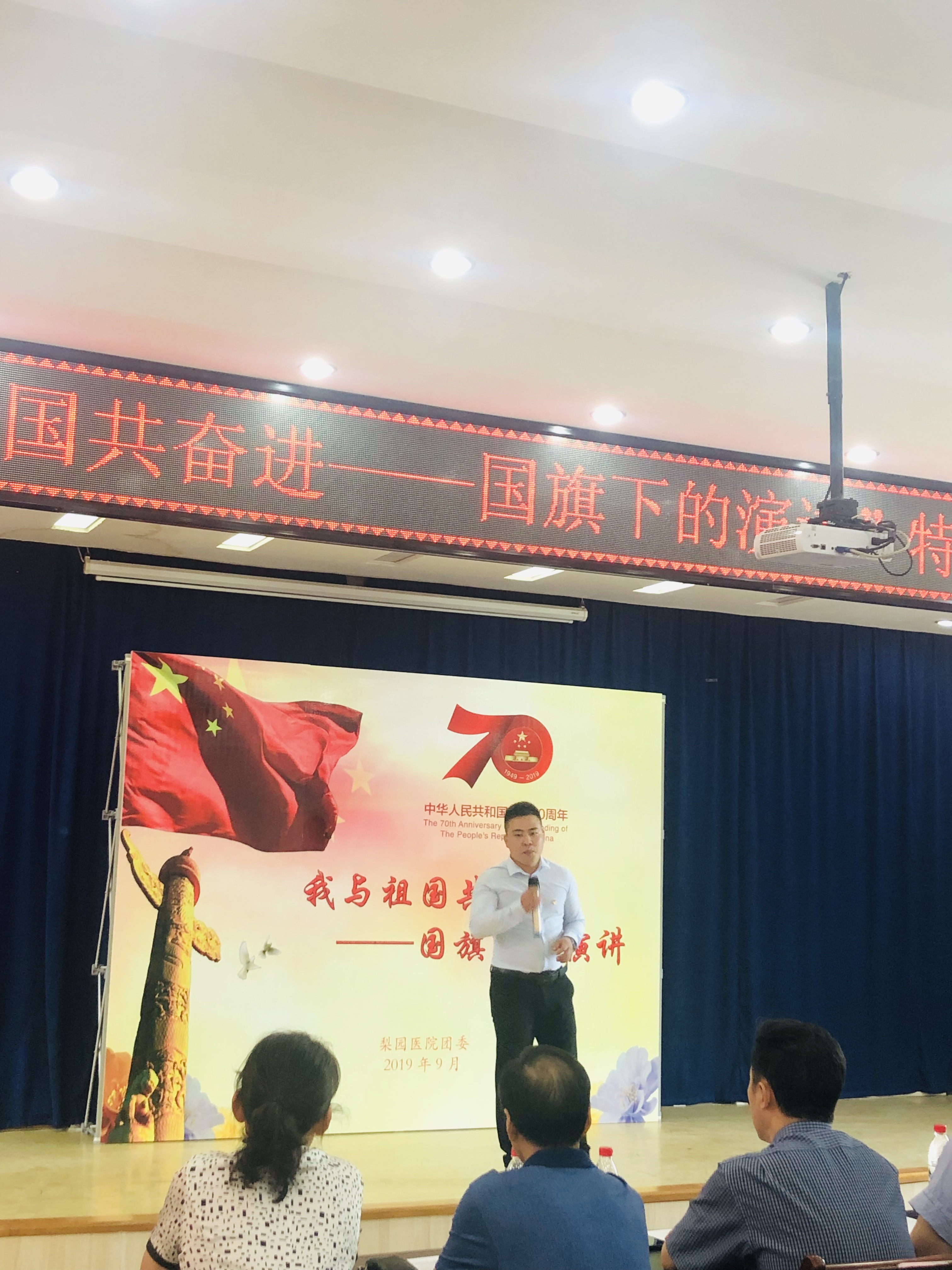 活动开始,党委副书记李善玲代表院党委预祝活动成功,并勉励团员青年将个人理想信念同国家前途、民族命运相结合,同社会需要和人民利益相一致,用激情和理想追梦,通过奋斗和奉献来圆梦。演讲人员包括医院医疗、护理、医技和行管的一线人员,以及学生团支部的研究生,他们结合自身工作与学习,有的和大家讲述了在医疗卫生战线平凡岗位上工作的点滴,回顾了来时路上的初心,有的抒发了作为一名炎黄子孙的骄傲与自豪,讴歌了70年沧桑巨变的伟大祖国母亲……无论演讲者,还是聆听者,在这次活动中都有了新的收获和感动。