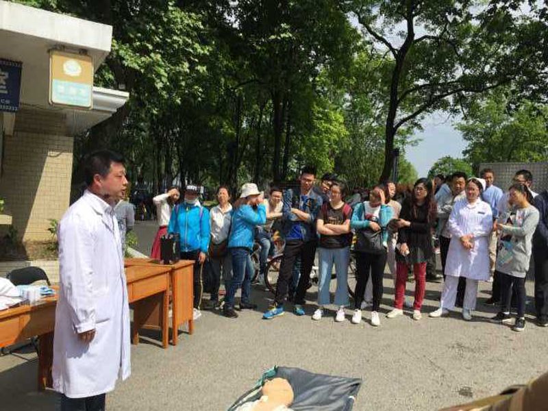 ICU青年医师彭品、骨科陈敬有、康复科吕亚希认真备课。ICU彭品医师现场演示心肺复苏术;骨科陈敬有医生、刘佳丽护士演示骨折后的处理;康复科吕亚希技师讲解如何科学户外运动,并与听众互动。现场精彩的讲解,得到听课职工和游客的好评。