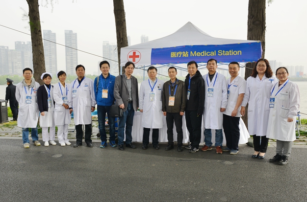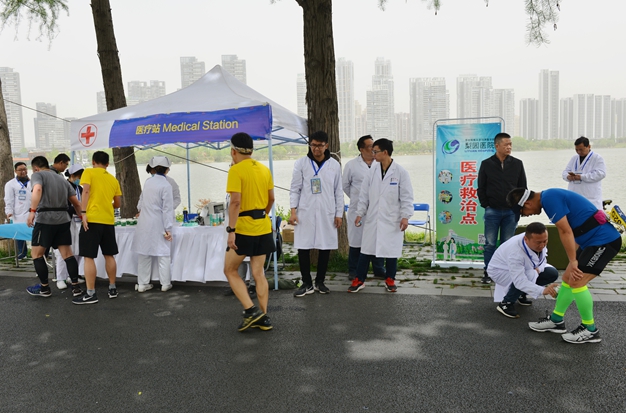 为确保赛事的顺利进行,让全体运动员健康奔跑,雷竞技官方入口 制定详细的应急医疗保障方案,勘查现场医疗点设置,从全院抽调涵盖骨手外科、ICU、神经外科、消化内科、神经内科、康复科等多个科室的32位临床专家及护理人员组成“汉马”医疗保障服务队,配备救护车,在院长熊枝繁的带领下奔赴医疗救治点进行医疗救护。