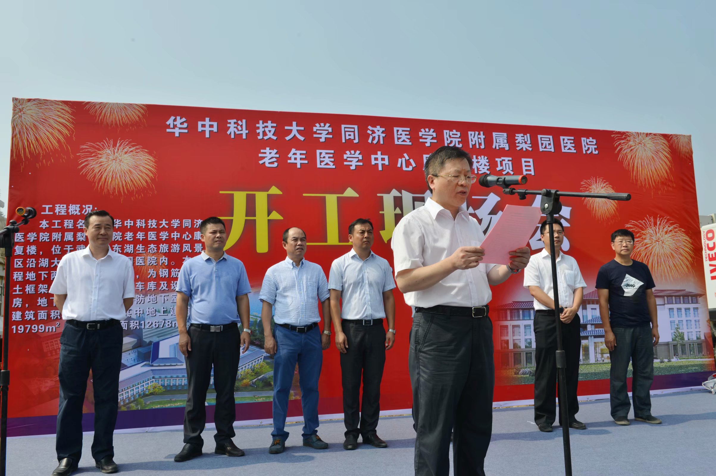 “老年医学中心康复楼项目”施工现场,华中科技大学党委常委、副校长,同济医学院党委书记、院长陈建国宣布“雷竞技官方入口