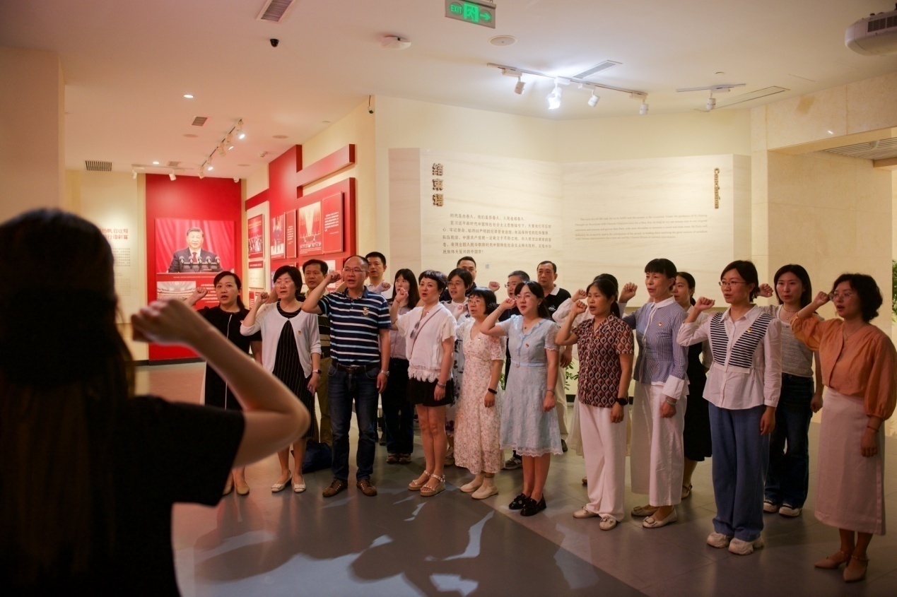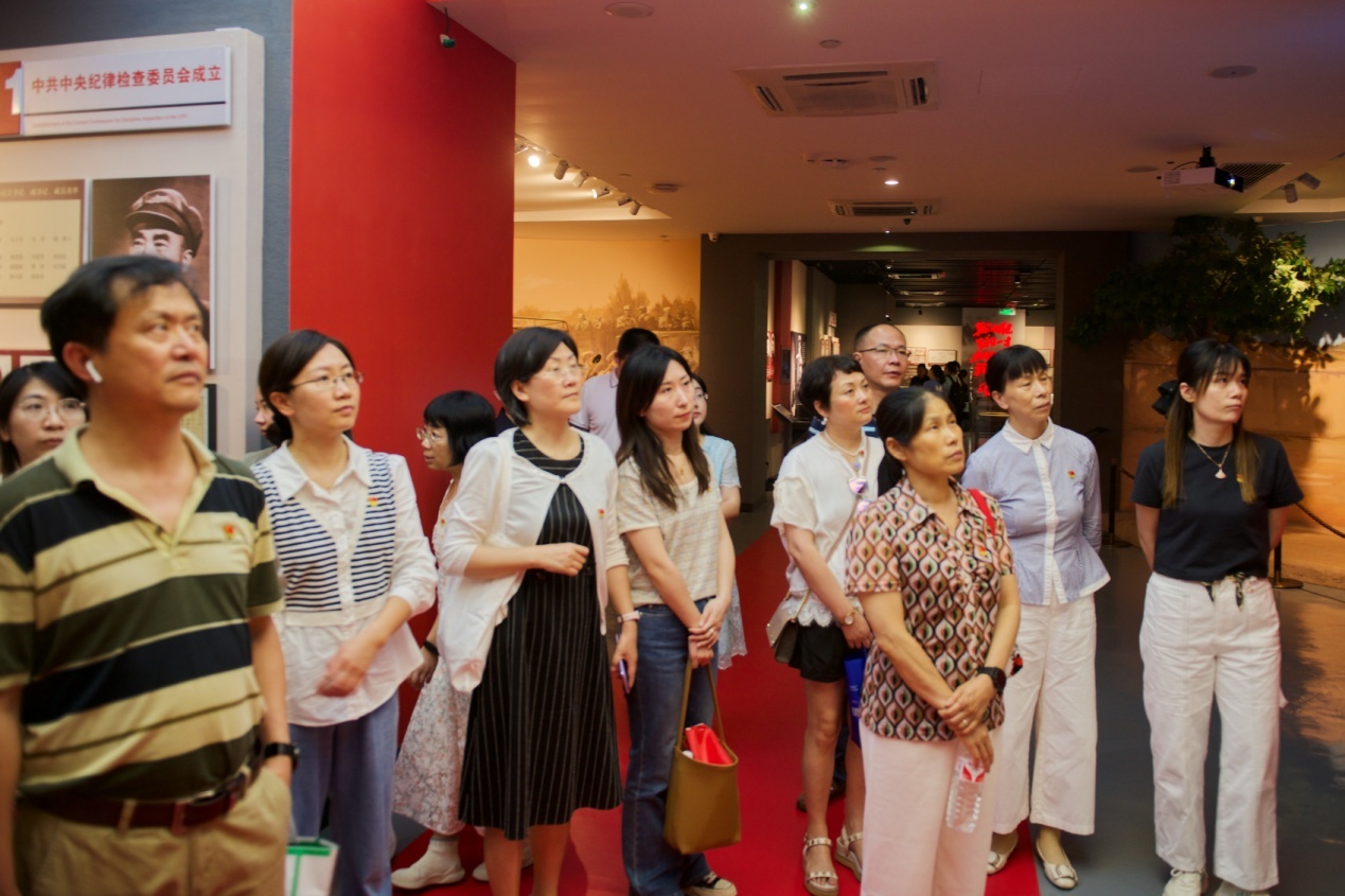 在中国共产党纪律建设历史陈列馆,大家依次参观了“创立与探索”、“推进与曲折”、“恢复与发展”、“新时代 新征程”四个主题展览,观看了展览中珍贵的文物资料、历史照片,详细了解了中国共产党纪律建设的重大历史事件,深深感受到中国共产党探索党纪道路的艰难历程。参观后,全体党员庄严举起右手,面对鲜红的党旗,重温入党誓词,铭记党员初心使命。