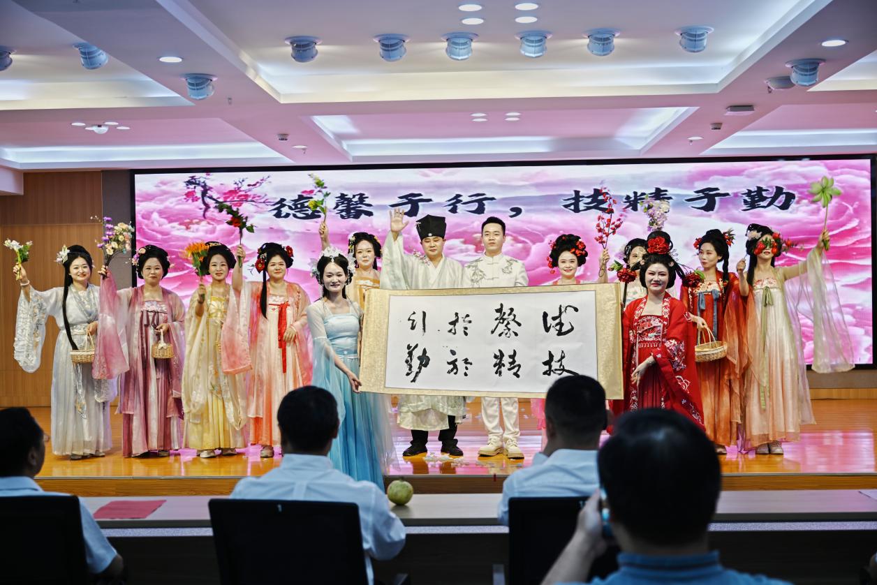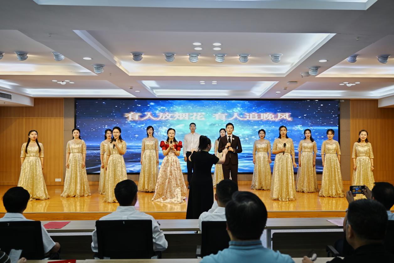 文艺汇演环节将大会推向高潮。歌曲《世界赠予我的》以温暖旋律致敬平凡中的伟大;诗朗诵《以心为灯 照亮生命》激励梨医青年以榜样为力量,勇担使命,践行职业誓言;舞台秀《医路生花》则通过艺术化呈现,展现了医师团队攻坚克难、守护生命的动人故事。主持词中提到:“这些节目不仅是才艺的展示,更是医者精神的生动写照。