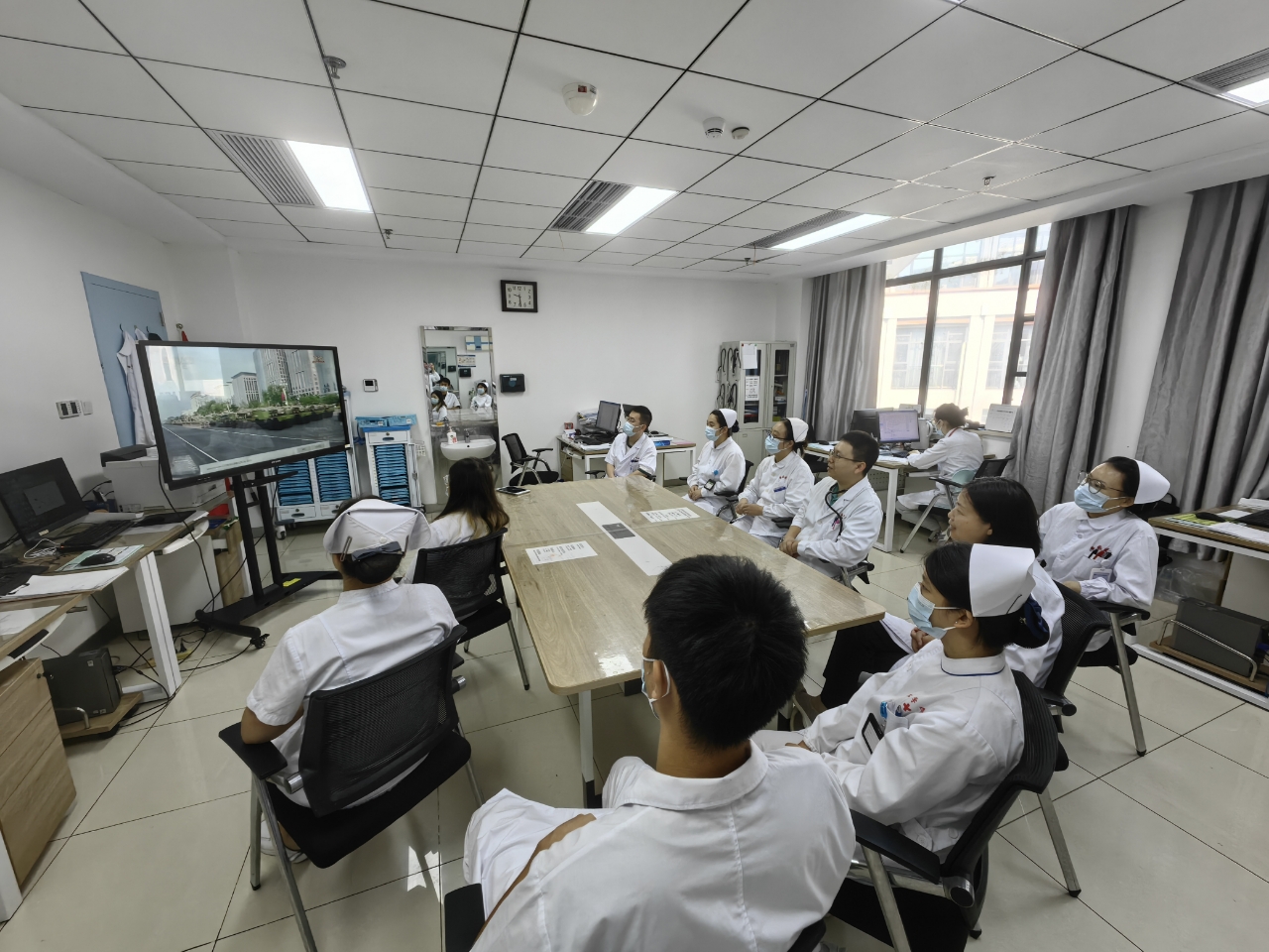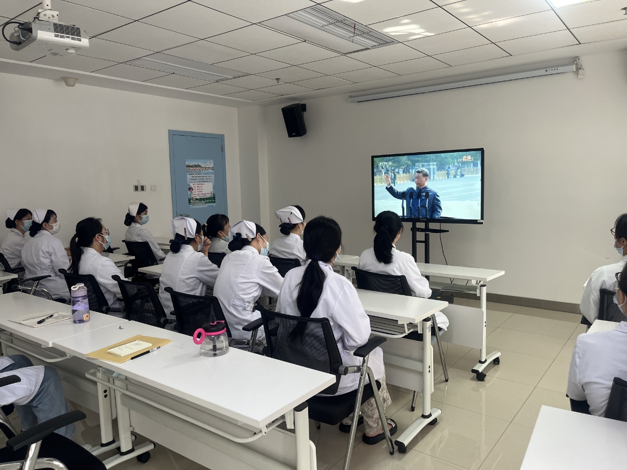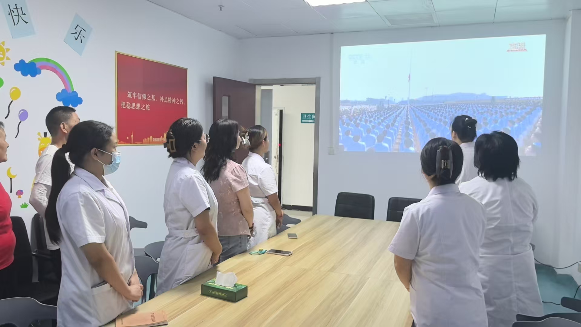 按照校党委统一安排,全体院领导及党务部门主要负责人集中在会议室进行了观看,各党支部分别组织全体职工、病友利用各种场所,以多种形式观看了阅兵仪式。