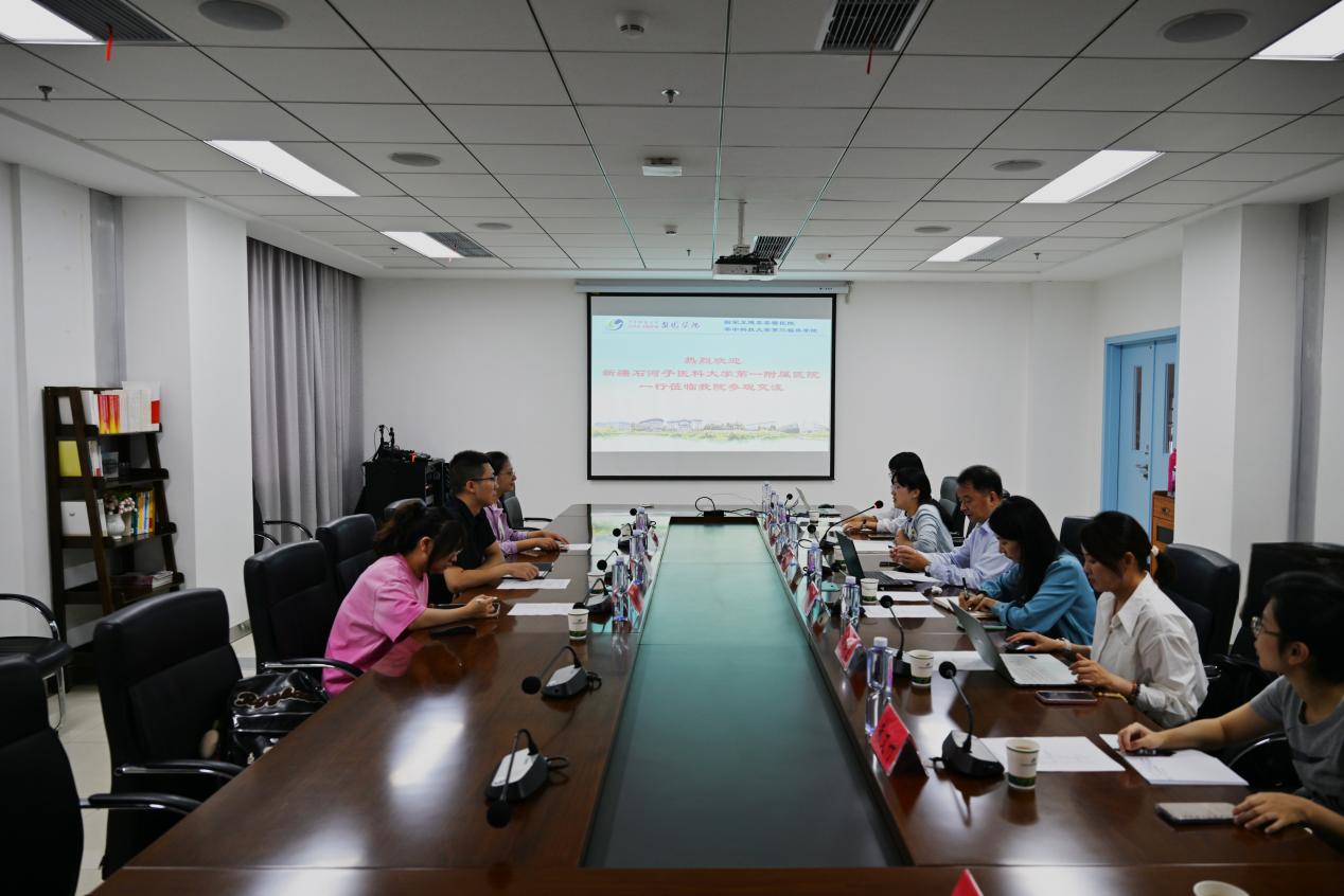 侯三平同志首先介绍了本院的基本情况、财务状况及医院运营管理信息化建设情况。曲世界科长对雷竞技官方入口 的热情接待表示感谢,并简要介绍了新疆石河子医科大学第一附属医院的概况和工作困惑。