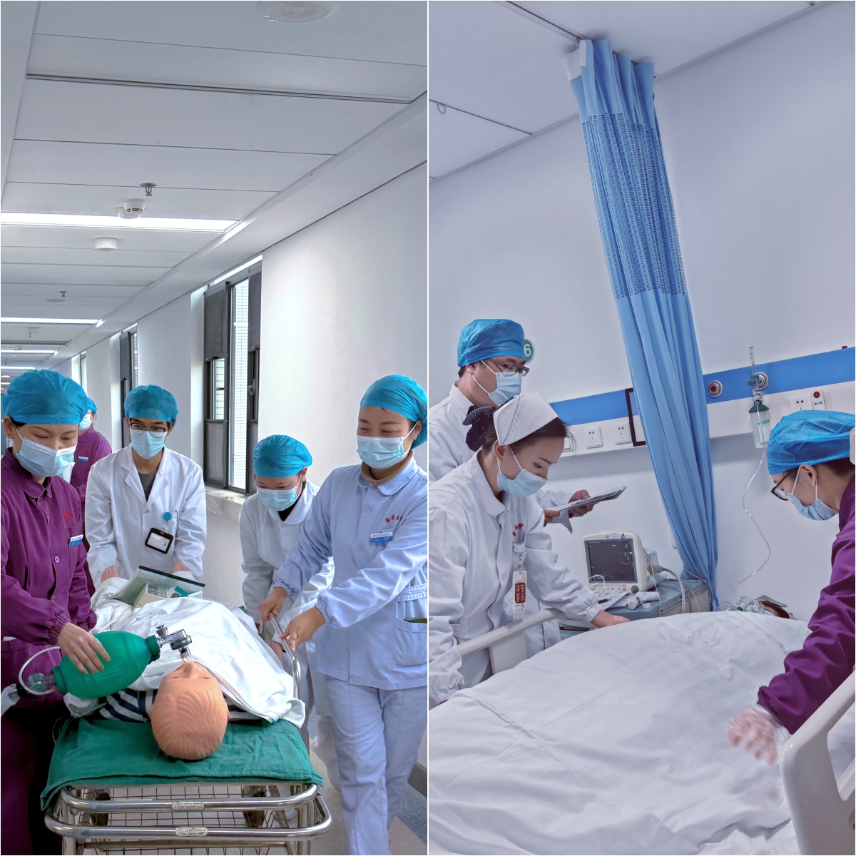 护理部龚玉枝主任接到电话后,立即启动“全院紧急情况下护理人力资源调配”应急预案,调动心血管一病区、骨科、消化内科的应急护士成员,迅速前往重症医学科参与抢救工作,应急护士均在规定时间内集结到位。
